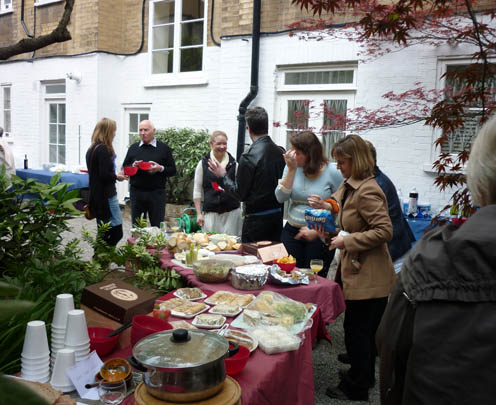 In contrast to last year's party, the 2009 party had a more intimate feel and there was a chance to talk to everyone and linger longer over conversations.There were several new faces at the summer garden party this year and it was nice to meet new residents and to welcome them to Maybury Court. As usual people brought delicious food and we relaxed in the warm afternoon sunshine making new friends, saying hello to old ones and meeting interesting guests. We realised after the fact that the Marylebone Fayre was on at the same time, so we will be careful to plan around a free weekend for our next event. On the other hand there was still time after the party to pop down to listen to the live bands in the warmth of the early evening. |